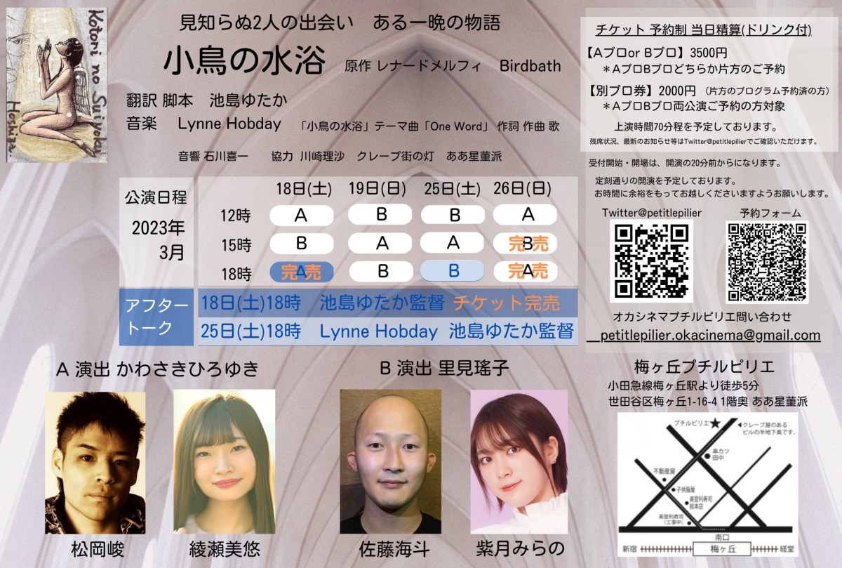 *開演の1時間前まで受付しております。それ以降はpetitlepilier.okacinema@gmail.com